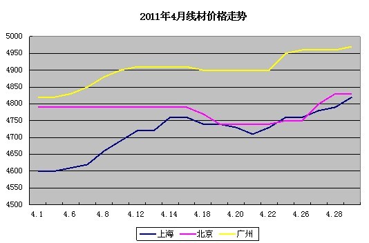 >> 6.5mm高线国内主要城市2011年4月份价格走势图